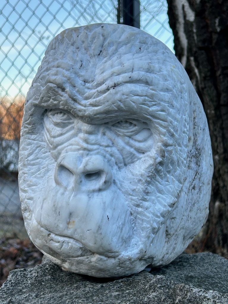 I When will this end? möter vi en primat i marmor, fångad i ett ögonblick.